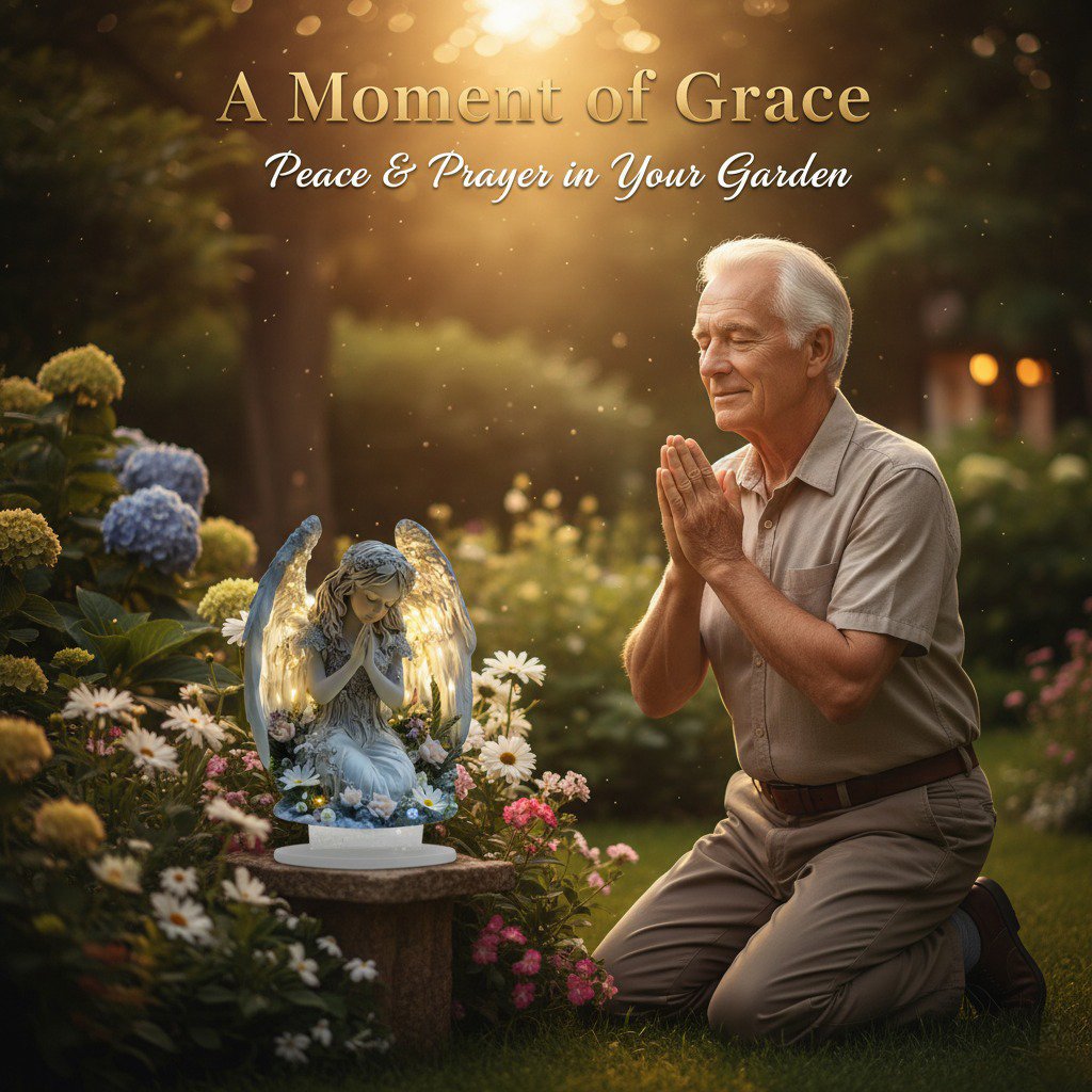 A garden should be a place of tranquility. The angel's serene, praying pose and soft light create a peaceful atmosphere, offering a quiet space for reflection.
