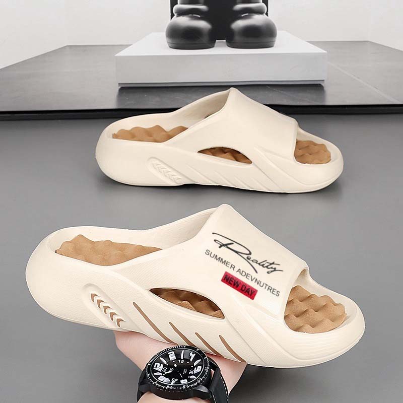 βοΈβοΈβοΈβοΈβοΈ βBest slides Iβve ever owned. I wear them after the gym and my feet donβt hurt anymore. The massage sole is a game changer!β β Mark T.