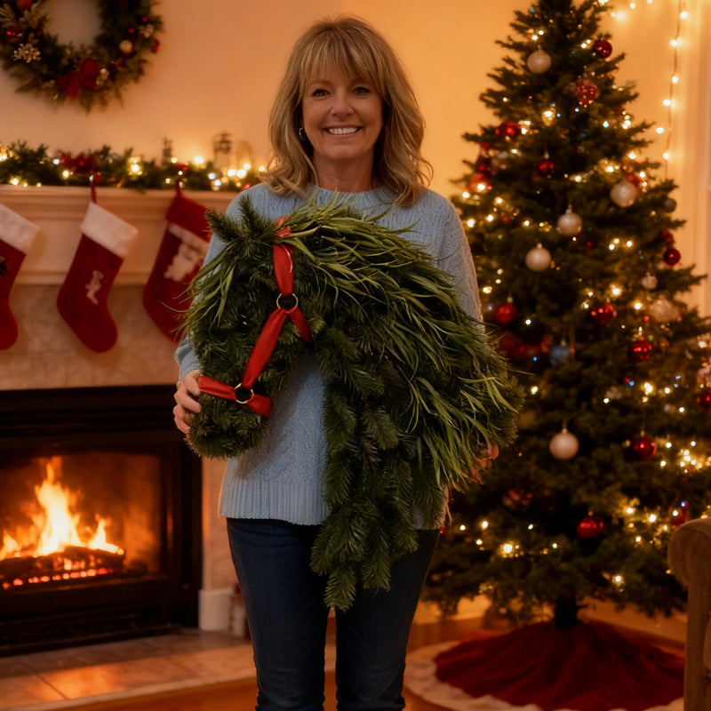 Each wreath is crafted from high-quality materials such as artificial pine branches, artificial cedar wood, natural cord, and velvet ribbons to ensure long-lasting beauty. The realistic textures and layers of greenery are carefully arranged to add a cozy and festive atmosphere to your home.
